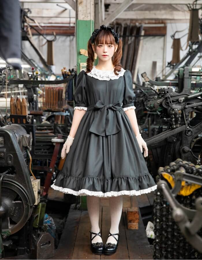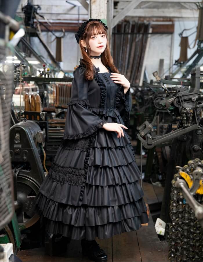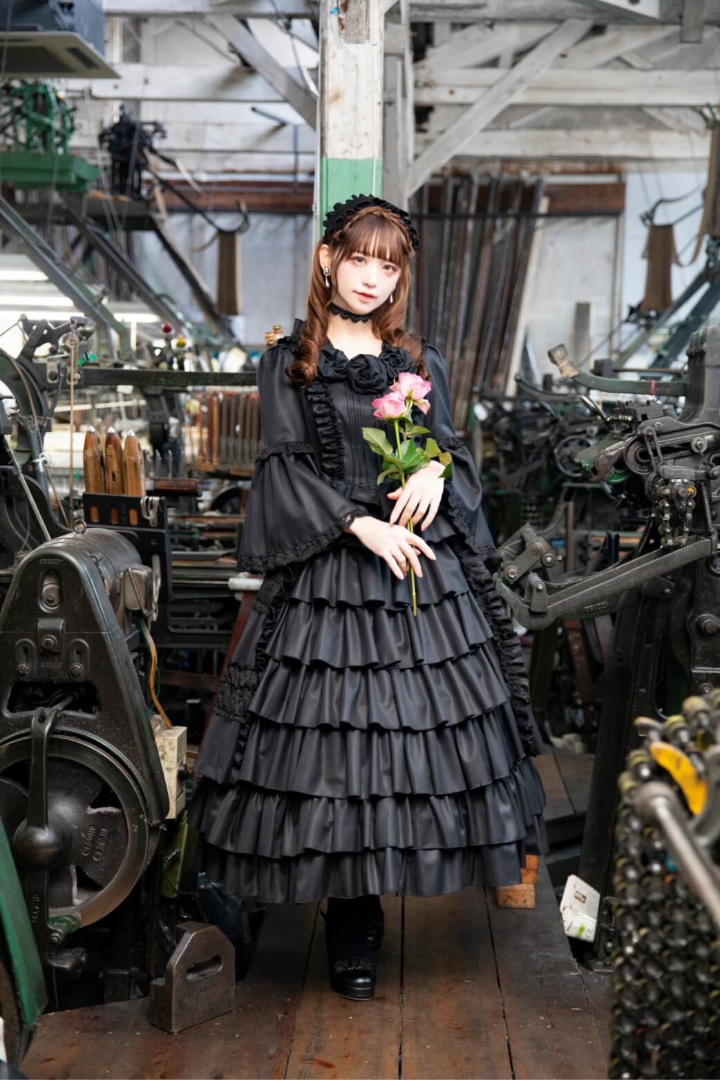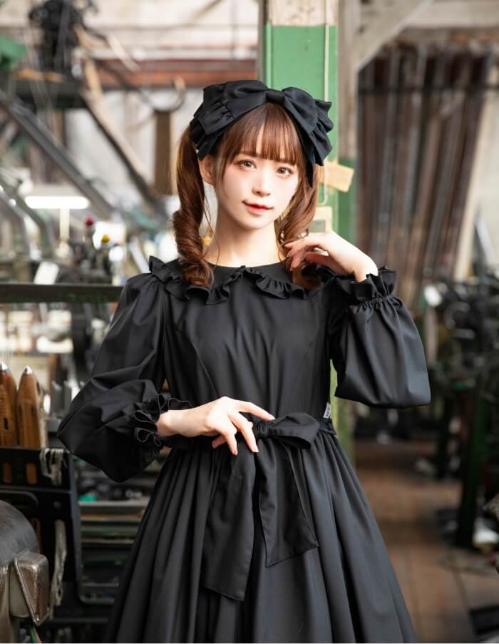 尾州ロリィタの生地は100年前のションヘル織機を使用しており昔ながらの製法でゆっくり丁寧に織られた柔らかな風合いと着心地の軽さが特徴です。
